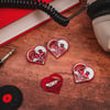 Eye catching love heart/vinyl record pin brooch featuring our love vinyl design a perfect badge design for record collectors and vinyl enthusiasts. This unisex pin is made from bright red translucent acrylic laser etched and then filled by hand before being secured by a catch pin on the reverse.