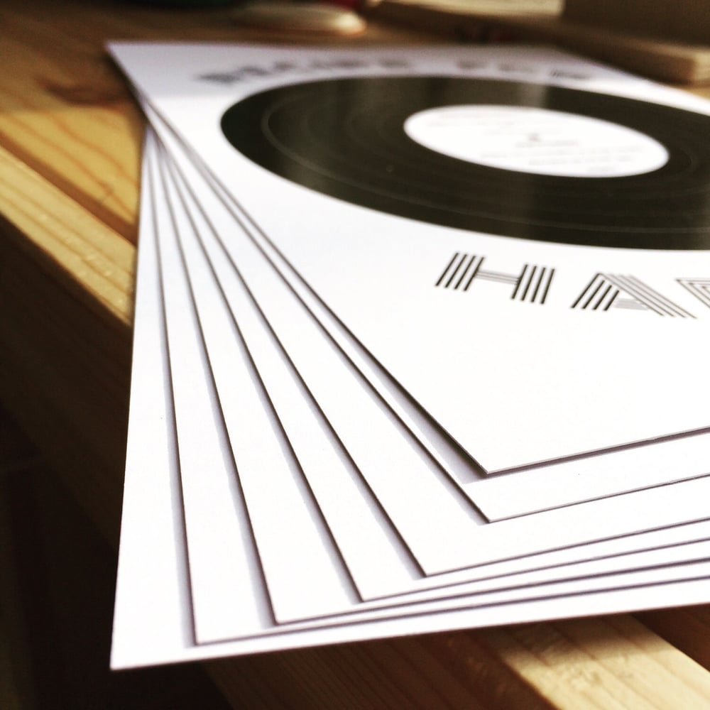 This monochrome heavyweight art print features our 'Recipe For Happiness' creating the perfect wall art for a record collectors home.